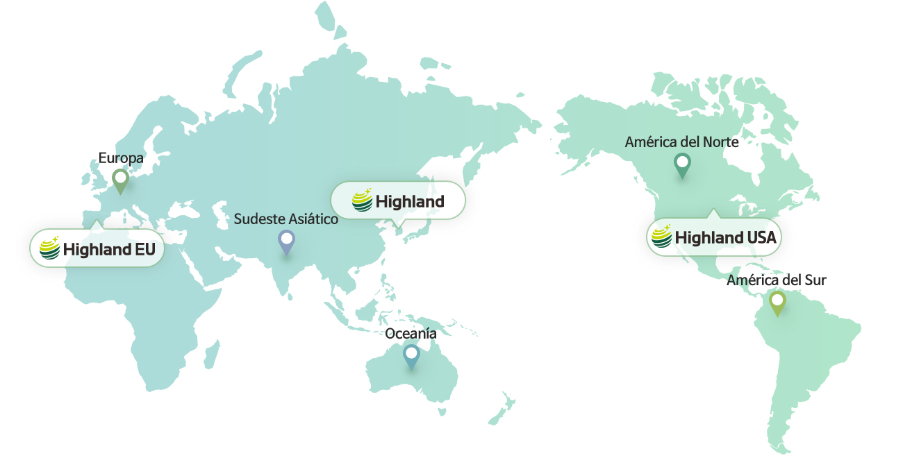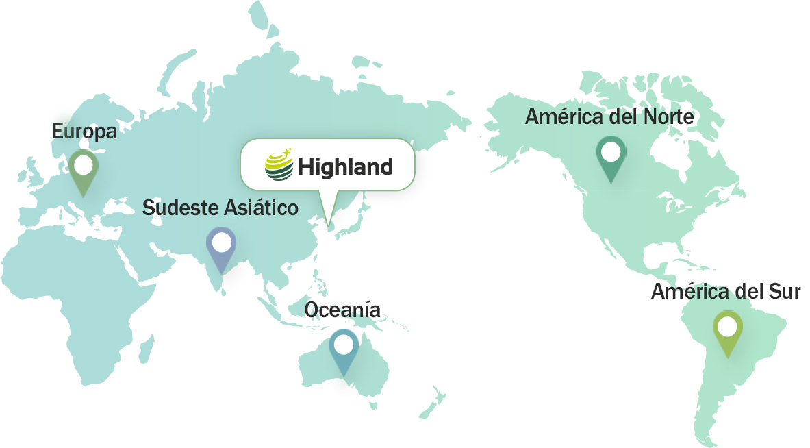 Para suministrar productos que los clientes puedan disfrutar sin miedo, Highland ha estado viajando por las zonas limpias de todo el mundo.